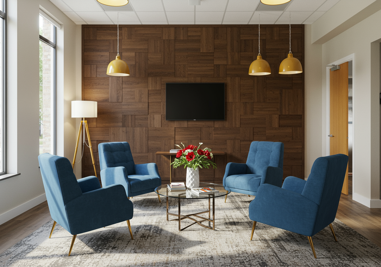 The lobby was designed to be a comfortable living style area for company and client events.